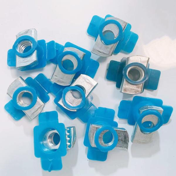 Strut Channel Nuts are manufactured from mild steel cold rolled coil , and after stamping and machining operations are completed , they are case hardened,assuring positive biting action into the inturned edge of the strut channel.